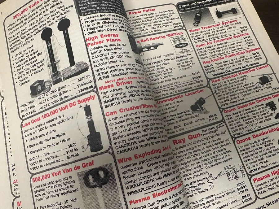 I 1983, så la jeg merket til at de reklamerte for en bok som het “Build Your Own Laser, Phaser, Ion Ray Gun & Other Working Space Age projects”. Det var en rimelig omstendelig prosess å melde seg inn. Jeg tror internasjonale svarfrimerker, skranker i postkontor og postanvisninger med sirlig signatur var involvert (ikkono internett. Ikkeno minibank. Penger var fysiske og du hadde bankbok der det sto hvor mye du hadde klart å spare. For å få cash, så måtte man dra til banken, legge bankboka på skranken og si hvor mye man ønsket å ta ut. Sedler ble så sirlig talt opp og overlevert. Å handle ting fra utlandet var ingen triviell affære.,